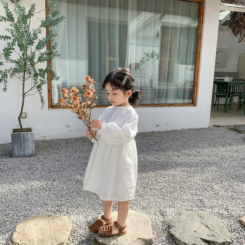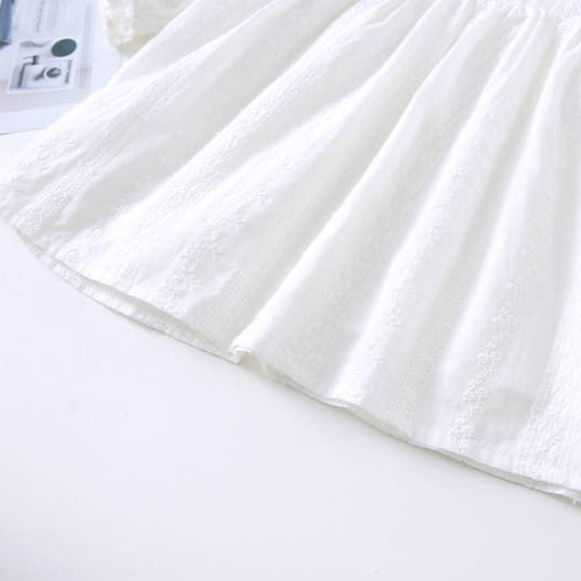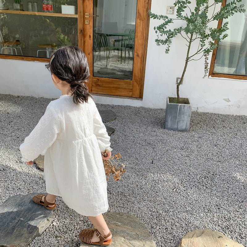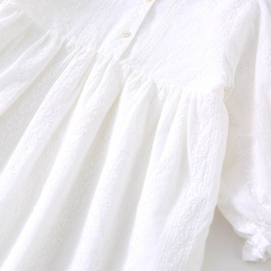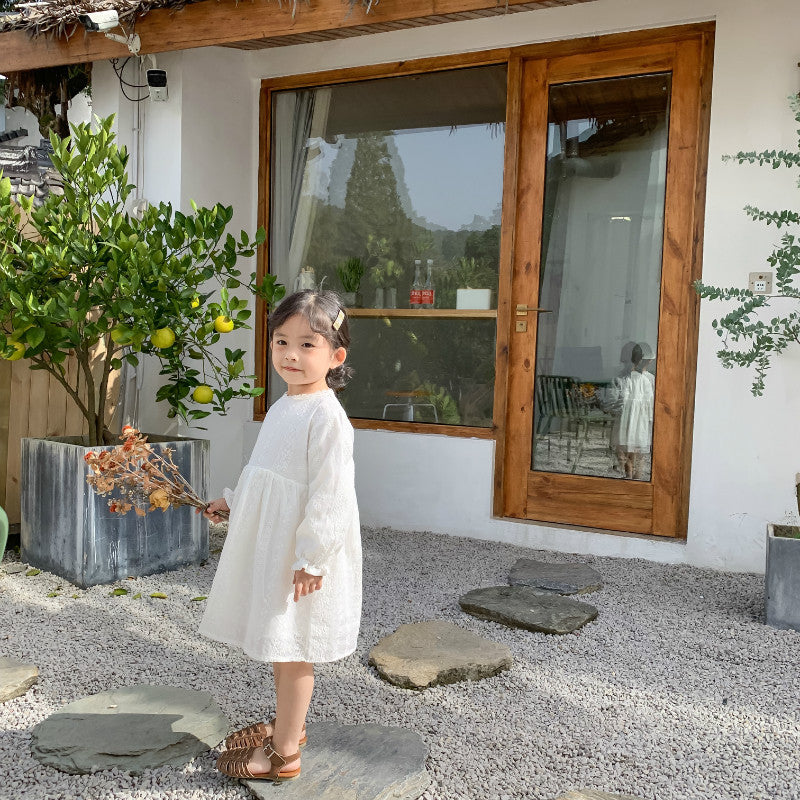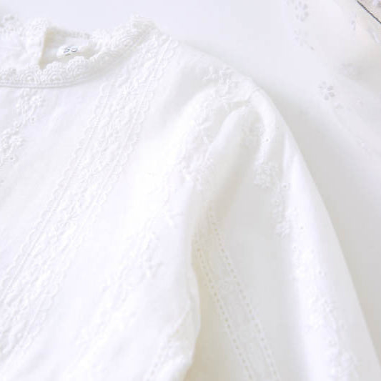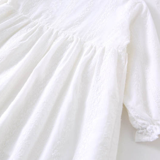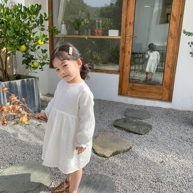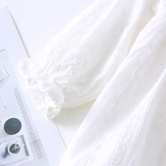 ホワイト刺繍長袖ワンピース
