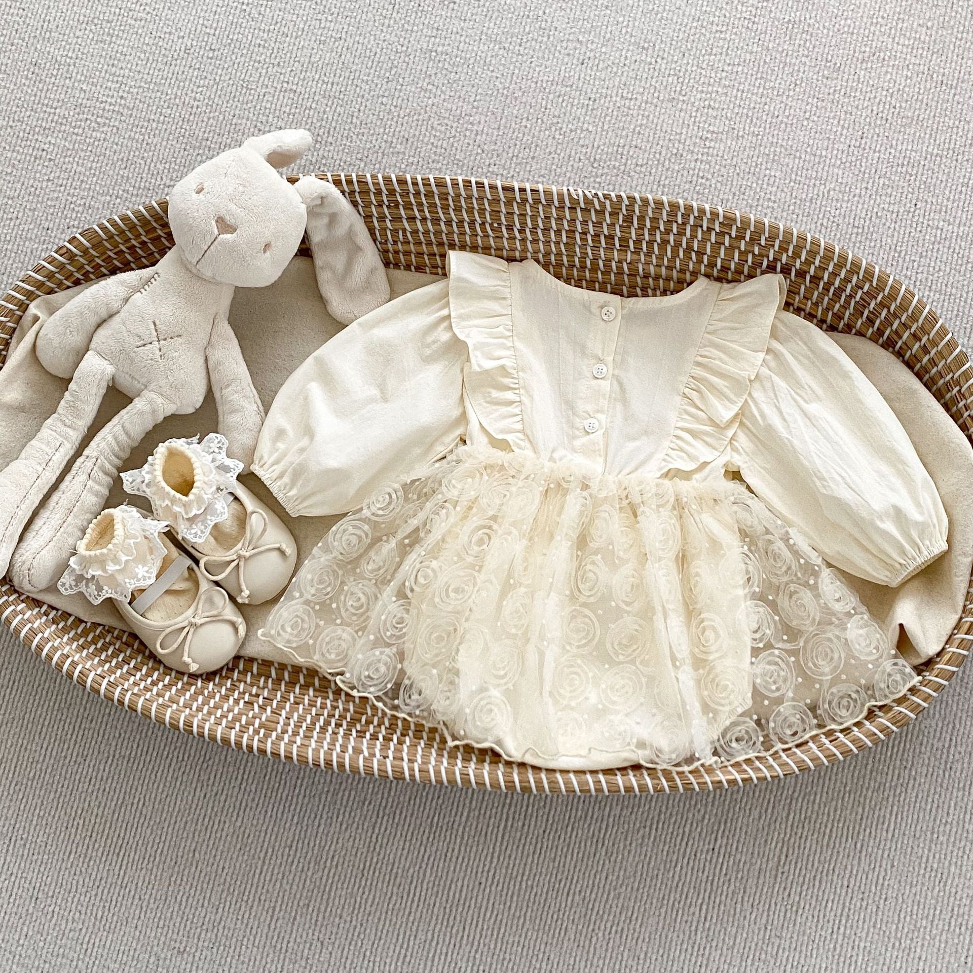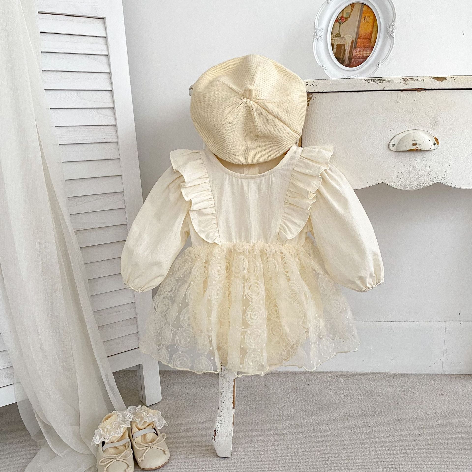 🅽🅴🆆 ローズチュール切替ドレスロンパース