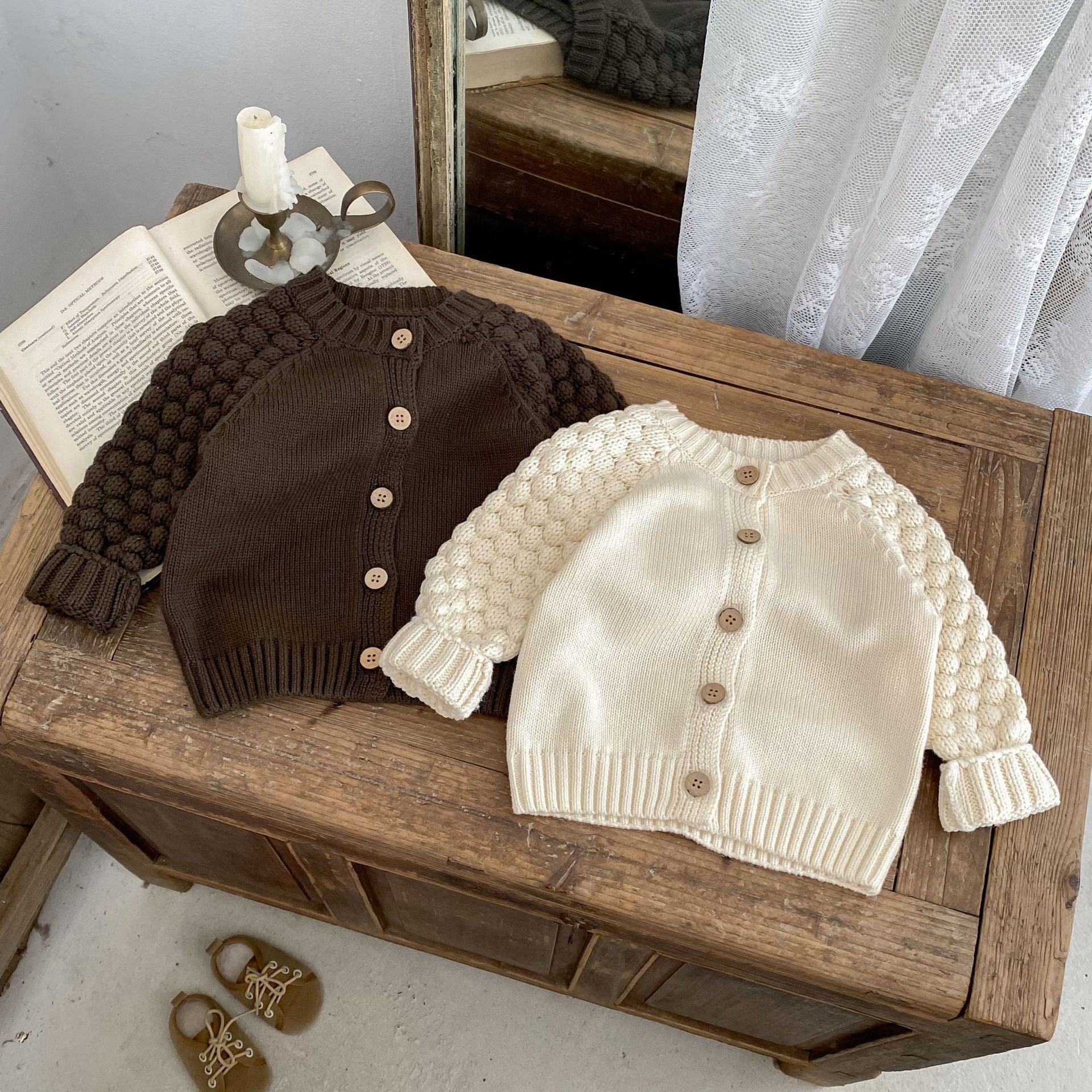 ポコポコスリーブニットカーディガン(2color)